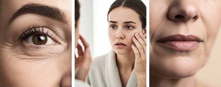 Со временем кожа теряет свою упругость и тонус, становится менее плотной и эластичной. Контуры лица постепенно теряют четкость, появляются признаки гравитационного птоза — легкое опущение тканей. Морщины становятся более выраженными, особенно в области лба, вокруг глаз и в носогубной зоне. Кожа истончается, ее поверхность теряет гладкость и здоровое сияние, появляется тусклый оттенок лица. Все это создает впечатление усталости, даже если вы хорошо высыпаетесь, полны сил и энергии.