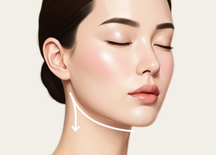 направляйте движения от центра подбородка к уху вдоль линии нижней челюсти. Повторите 3–4 раза