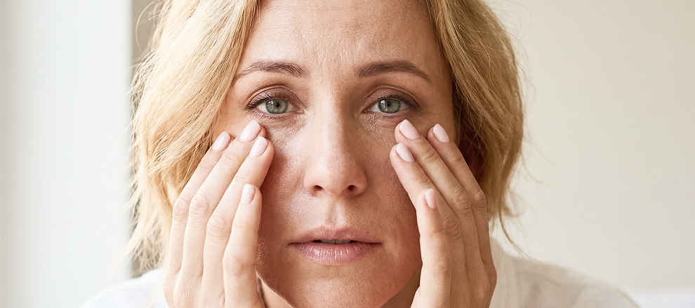 - Возрастные изменения. С возрастом снижается выработка коллагена и эластина, кожа теряет упругость и плотность, дерма истончается, замедляется обновление клеток. Жировые пакеты опускаются вниз, усиливая носогубные складки и размывая овал лица;