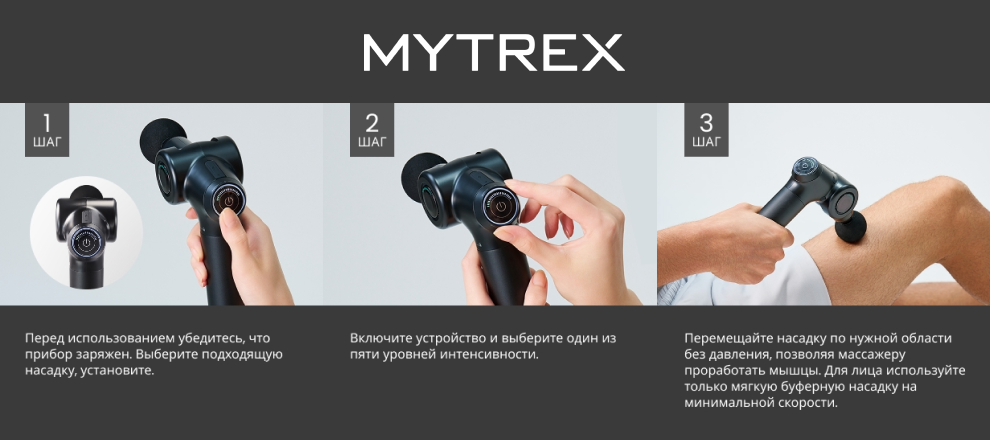 Премиальная новинка на рынке перкуссионных массажеров – REBIVE EX FIT от бренда MYTREX объединила в себе японские технологии, максимальную эффективность и удобство для пользователей.