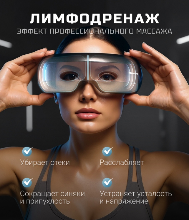 Массажер вокруг глаз сочетает в себе три функции: прессомассаж, инфракрасный прогрев и музыкальную терапию. Эффективно снимает усталость, уменьшает отеки и темные круги под глазами, помогает расслабиться после длительной работы за компьютером. Складная конструкция очков-массажеров, смотровые окошки, работа от аккумулятора, интуитивно понятное управление и легкий вес делают их идеальным спутником не только дома и в офисе, но и в поездках.